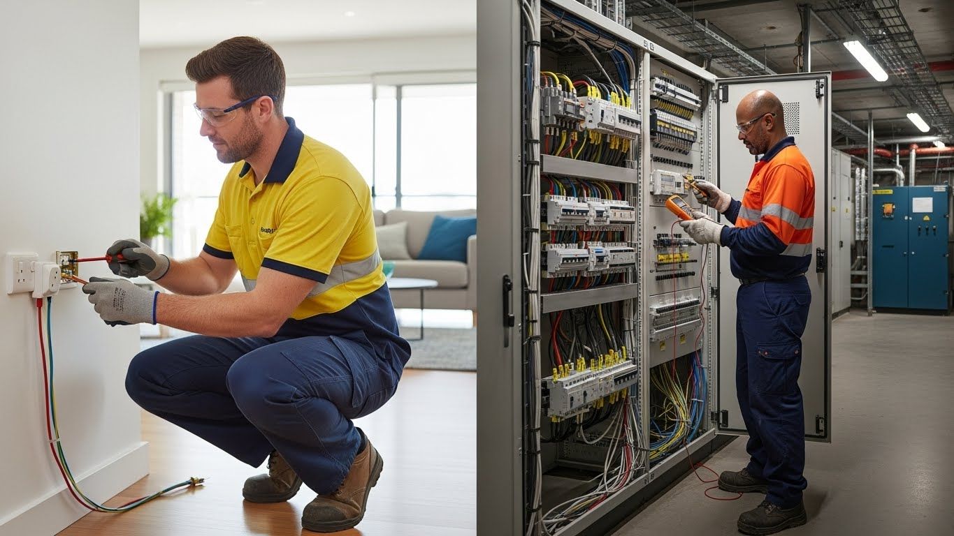 | Technical Complexity | Handles basic wiring, lights, switches, and power points. | Plans and maintains larger systems, balances loads, and deals with more complex electrical problems. |